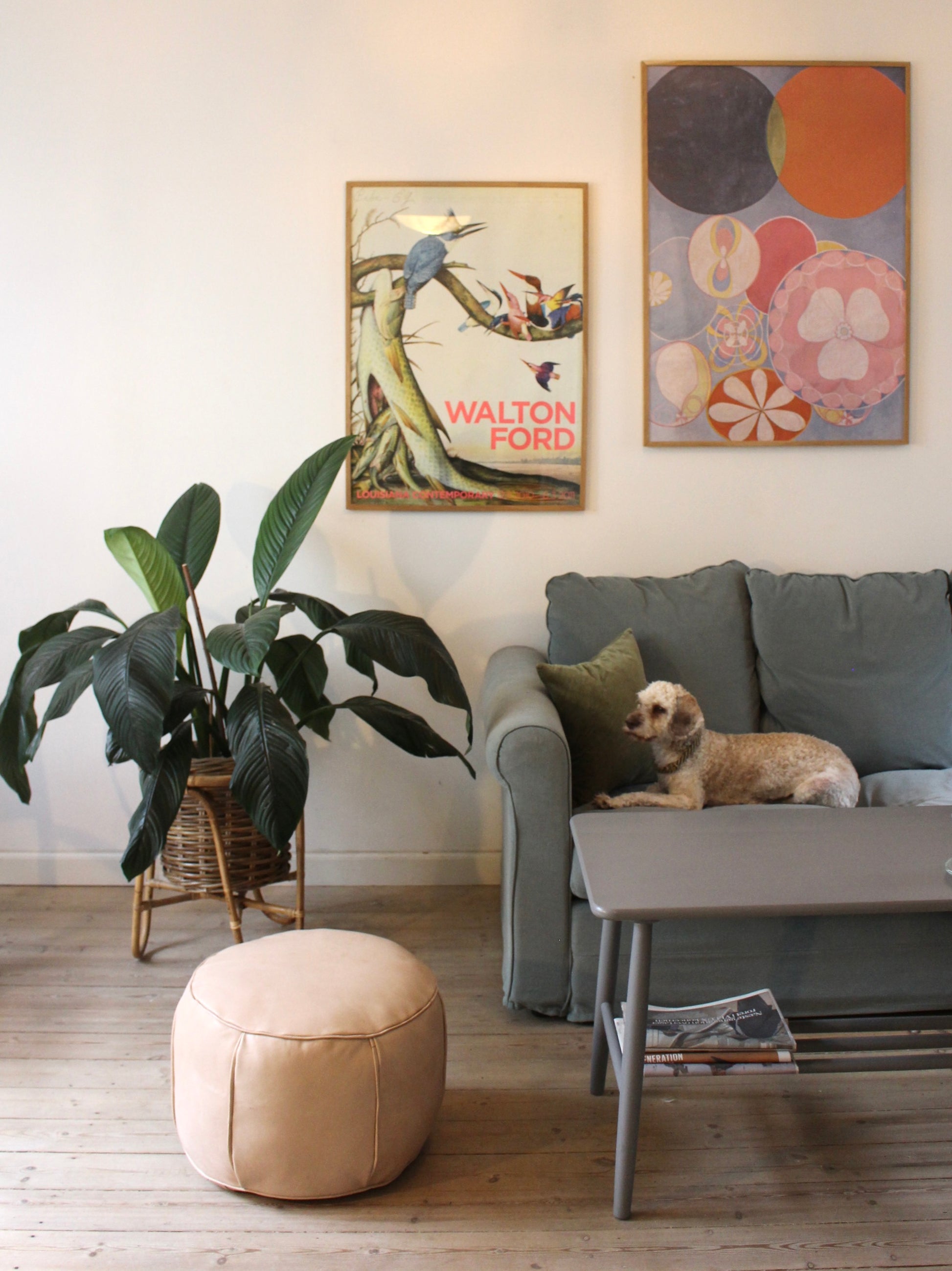 Rengøring og vedligholdelse: Rengør med en hårdt opklemt fugtig klud. Brug ikke sæbe til rengøring. Giv puffen noget neutral fedt, for at opretholde fugt og glans i læderet. Læderfedt er klart at foretrække, og puffen vil efter påførelse af læderfedt fremstå lidt mørkere og mere gylden.