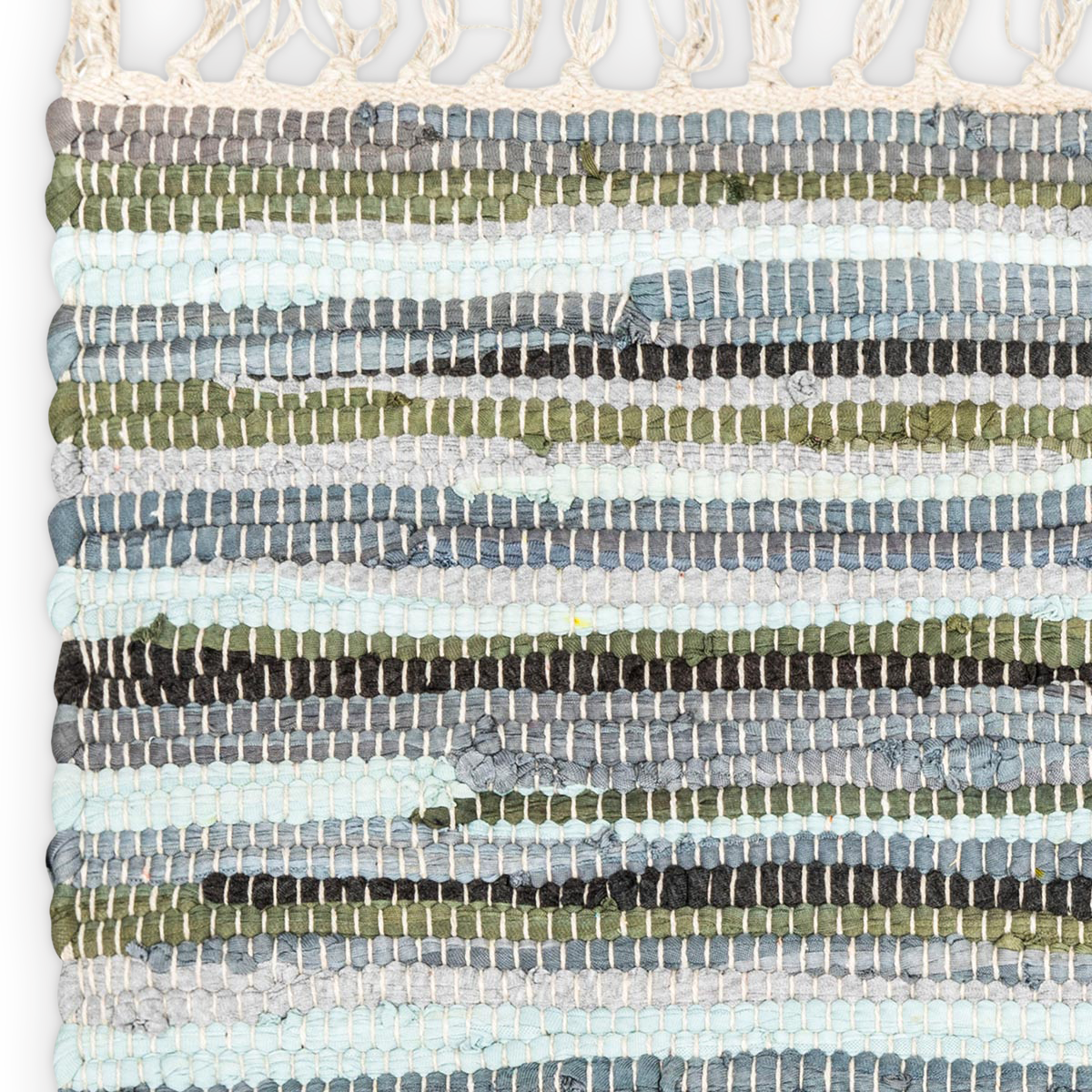 Vores kludetæpper bliver fremstillet i Indien og er af 100% bomuld. De ligger godt på gulvet. Hvis gulvet er meget glat, kan man med fordel bruge et underlag. De bliver fortrinsvis fremstillet af rester fra tekstil industrien og indfarves inden de bliver vævet. Farverne passer ind i vores nordiske stil.