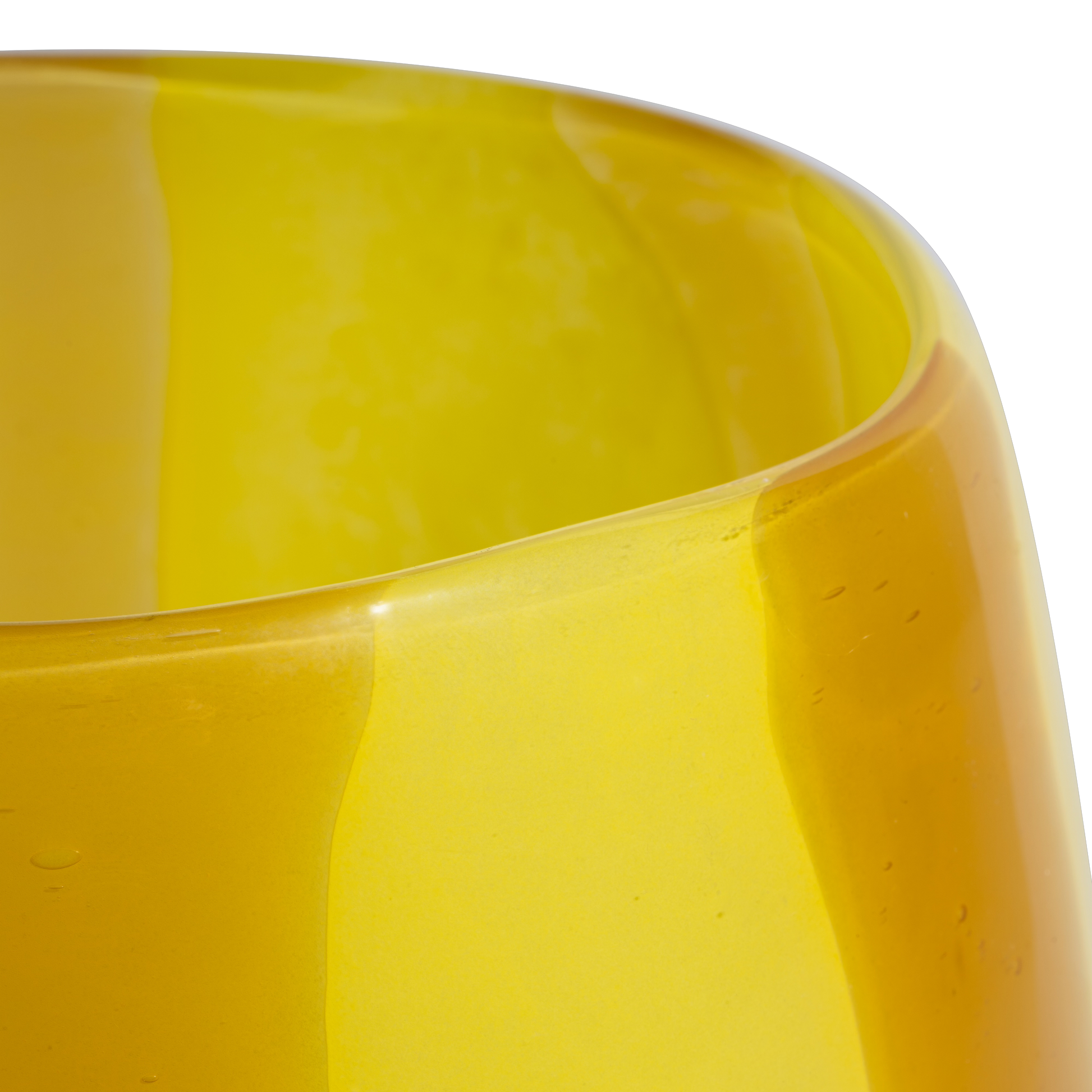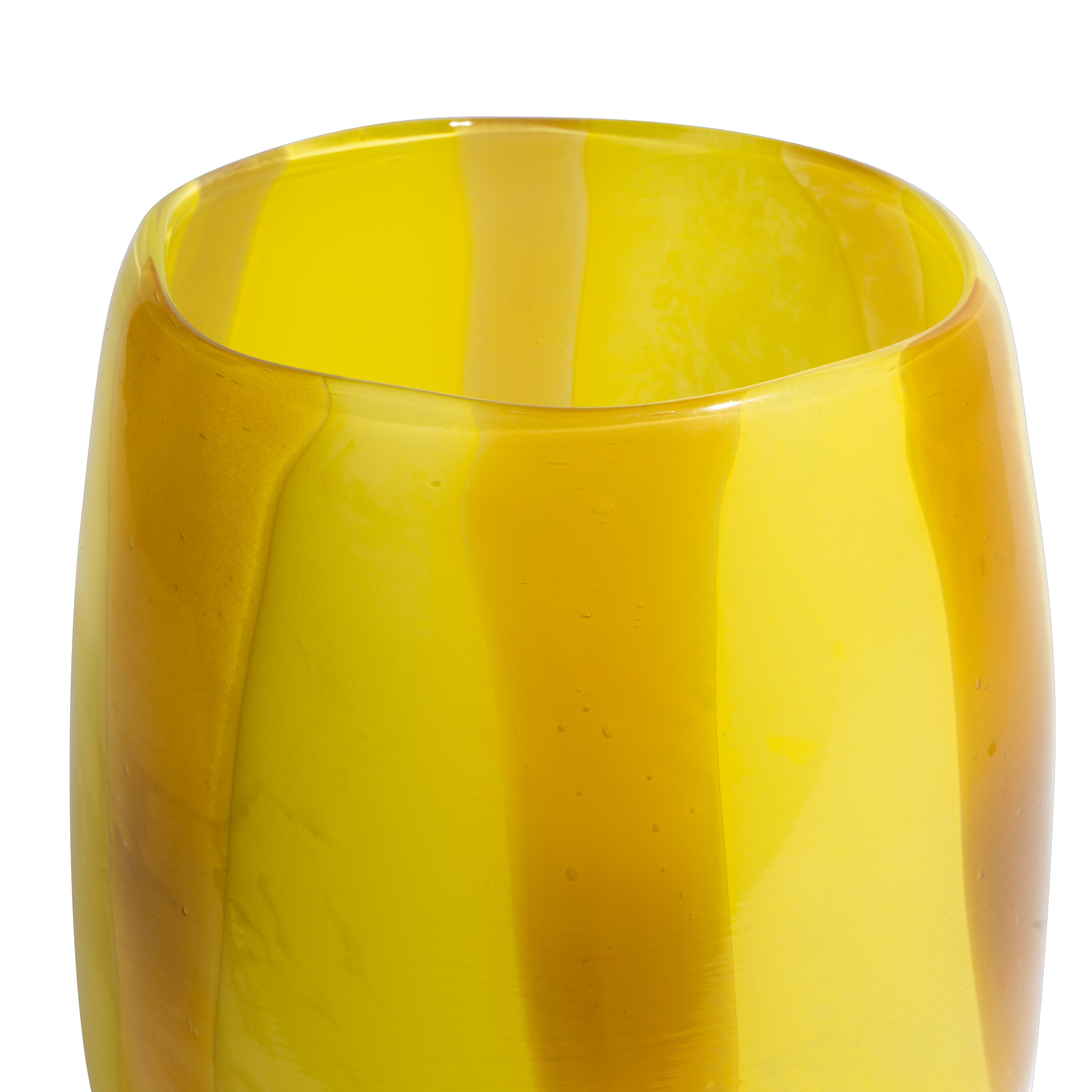 Vase med varm gul farve og striber.