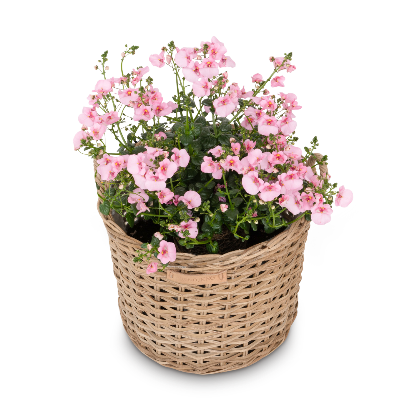 Denne kurv er flettet af Rattan, som er et bæredygtigt materiale fra Asien. Det er et meget solidt og vejrbestandigt materiale. I gamle dage kaldte man det spanskrør.