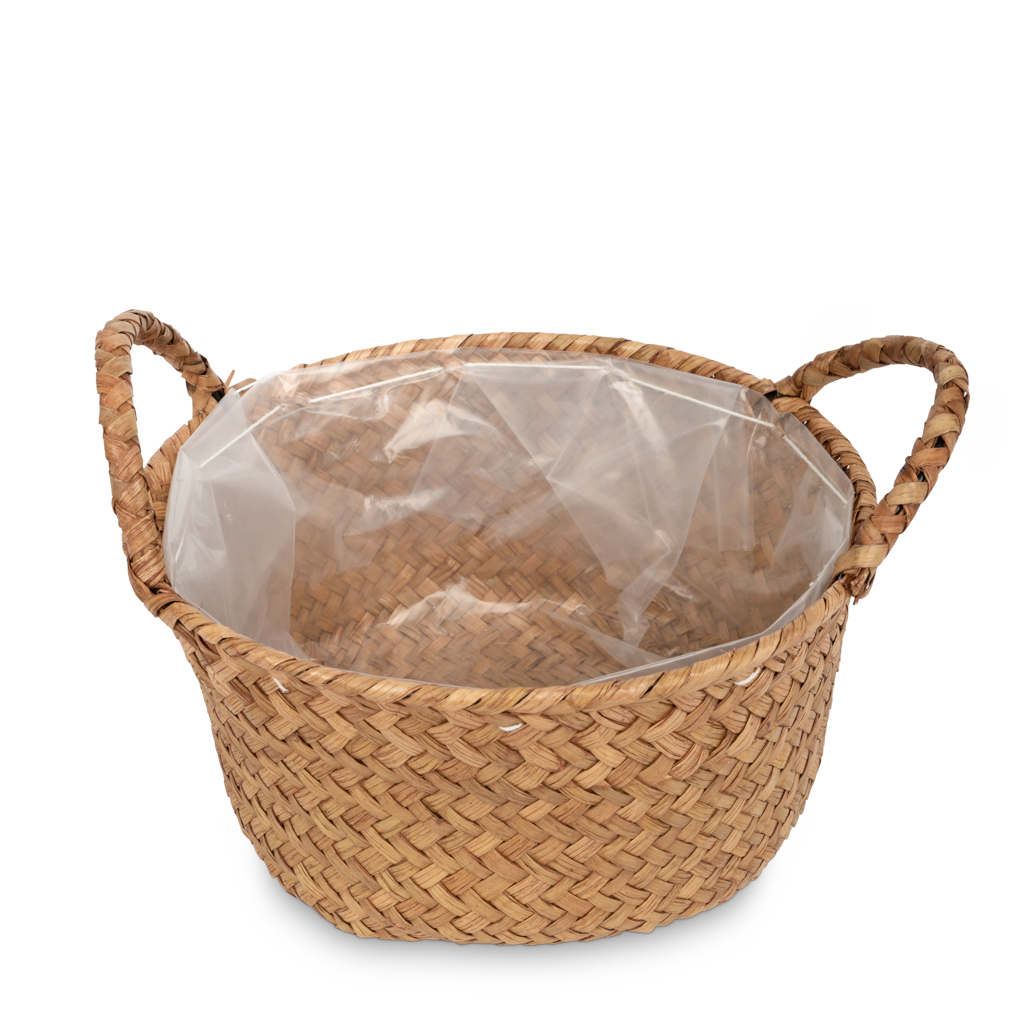 Rund Plantekurv i Søgræs m. Plastik Ø20xH10